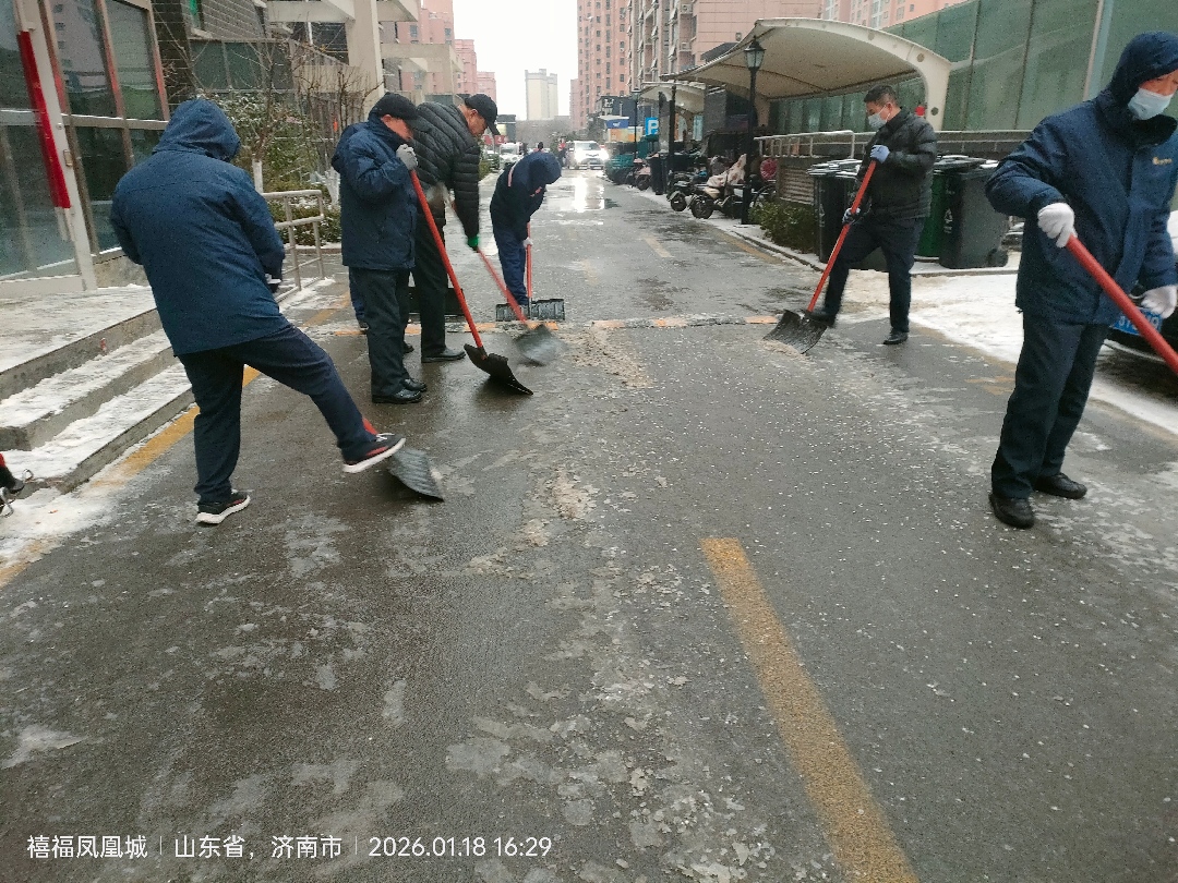 長田物業(yè)禧福鳳凰城項(xiàng)目部,聚焦業(yè)主出行路。結(jié)冰路段的隱患,在物業(yè)人的忙碌中消解。沒有驚天動地的舉措,只有腳踏實(shí)地的堅(jiān)守,護(hù)佑每一次清晨的出發(fā)、日暮的歸途。